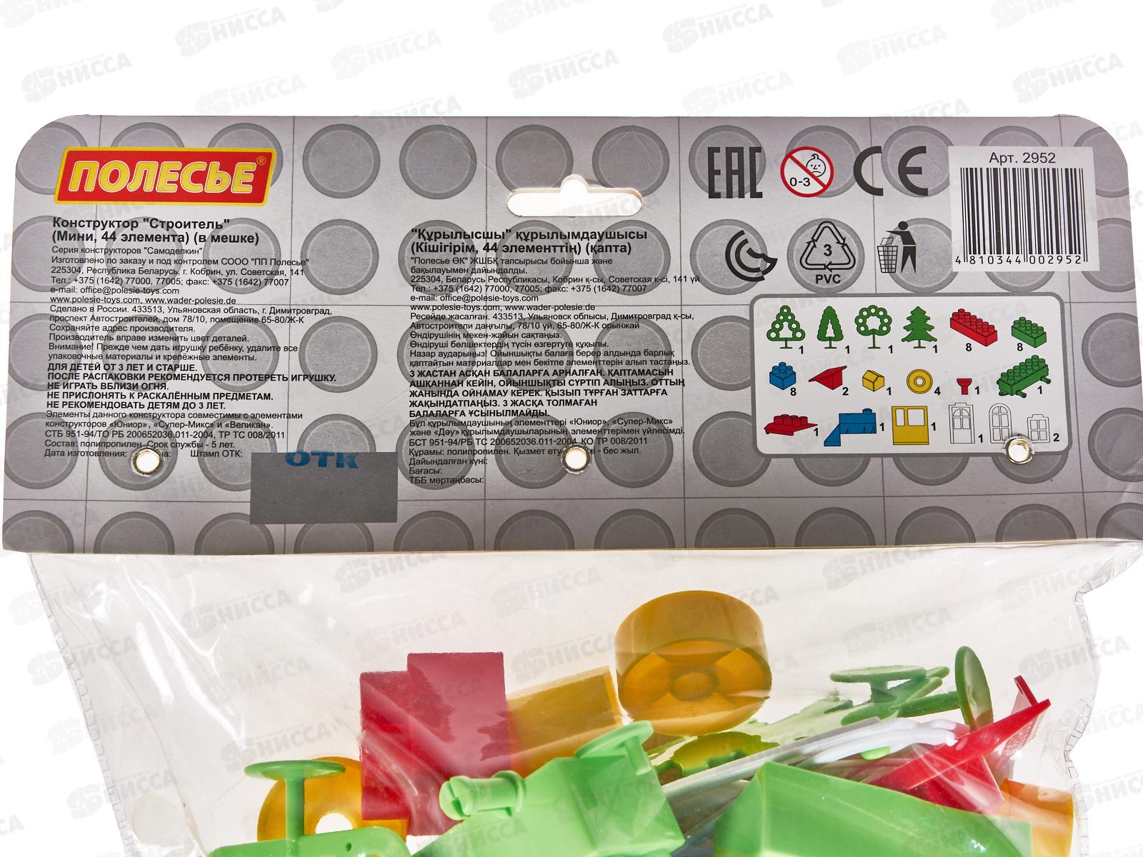Конструктор Самоделкин-Строитель 44 элементов 2952 мини в пакете *20