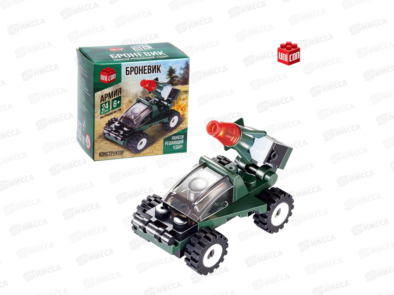Представьте, что вы находитесь в горячей точке, противник уже близко, а у вас нет надлежащей техники, чтобы атаковать его. Соберите военный «Броневик» торговой марки Unicon и нанесите решающий удар! В комплект входит 24 детали. Элементы изготовлены из высококачественной пластмассы, надёжно соединяются между собой и разбираются без особого труда. Совместим с конструкторами AUSINI, Brick, Sluban, COGO, LEGO, Peizhi, Jie Star.