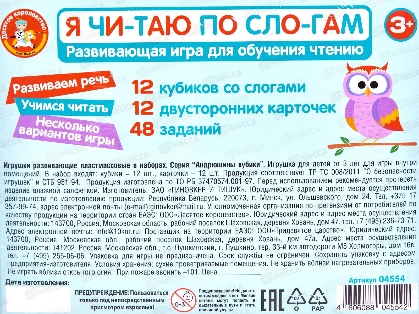 Кубики "Кубики для умников. Я читаю по сло-гам" 12шт, 04554 *10