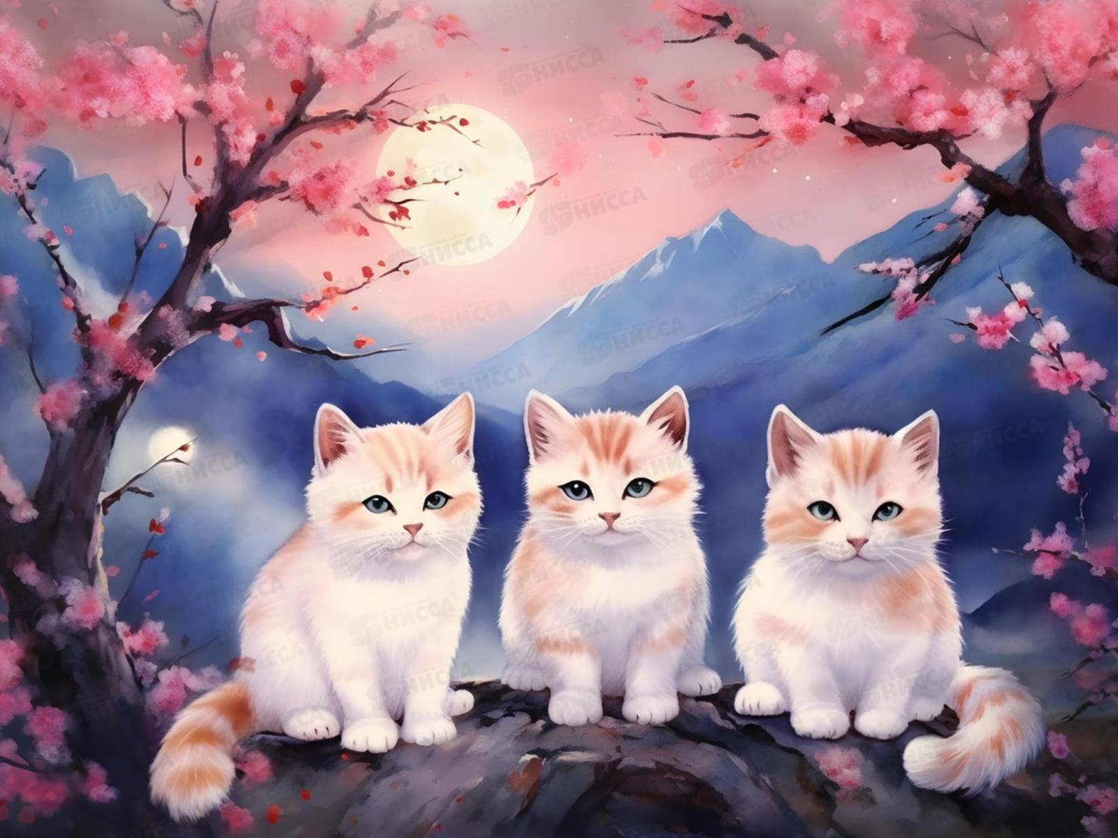 Алмазная мозаика (класс.) 30х40см Котики в Японии, НД-6346