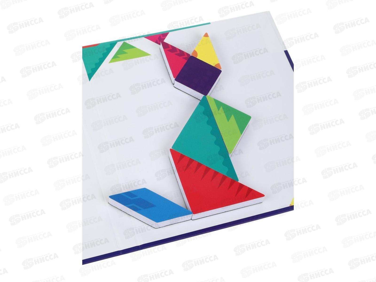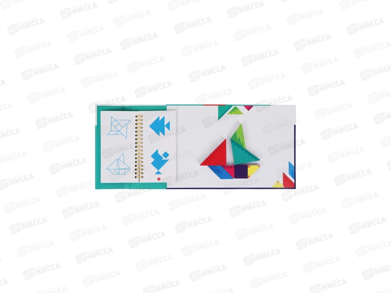 Танграм включает семь магнитных деталей разной формы. Если соединить все эти детали вместе, получается квадрат. Ребёнку предстоит сложить из деталей Танграма фигурки людей, животных, предметы, буквы и цифры. Это немного сложнее, чем может показаться на первый взгляд. Фигура, которую нужно сложить, задаётся в виде силуэта или внешнего контура. И для создания каждой новой фигуры нужно использовать все семь деталей Танграма, избегая их наложения друг на друга. С этой интересной игрой ребёнок полюбит решать логические задачи. В комплекте: 7 магнитных деталей, 56 заданий с ответами (ключ с решением на обороте карточки).