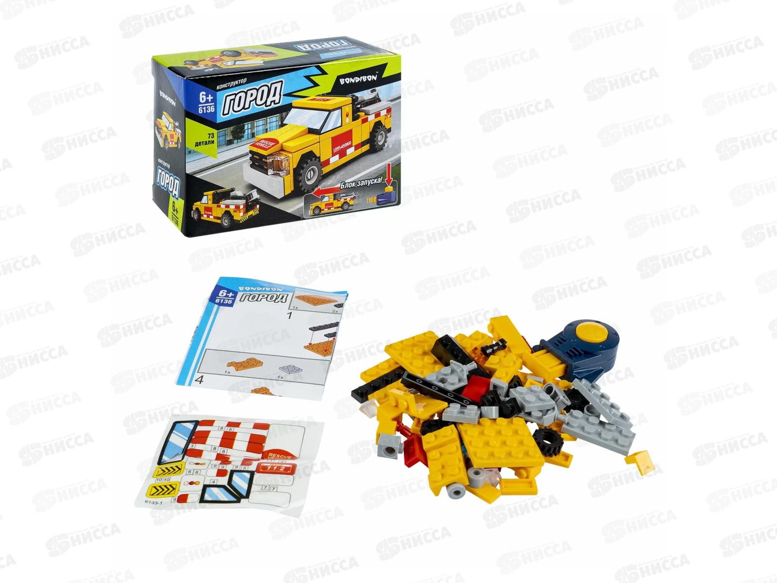 Конструктор Bondibon Город, Машина, желто-красная 73дет ВВ6136
