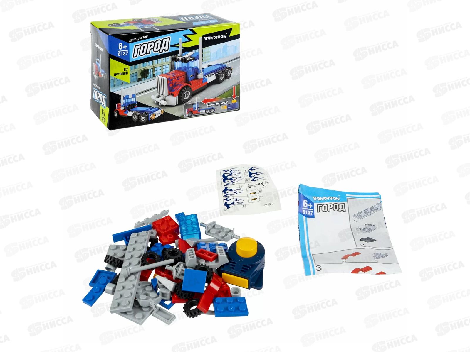 Конструктор Bondibon Город, Грузовик, сине-красная 67дет ВВ6137