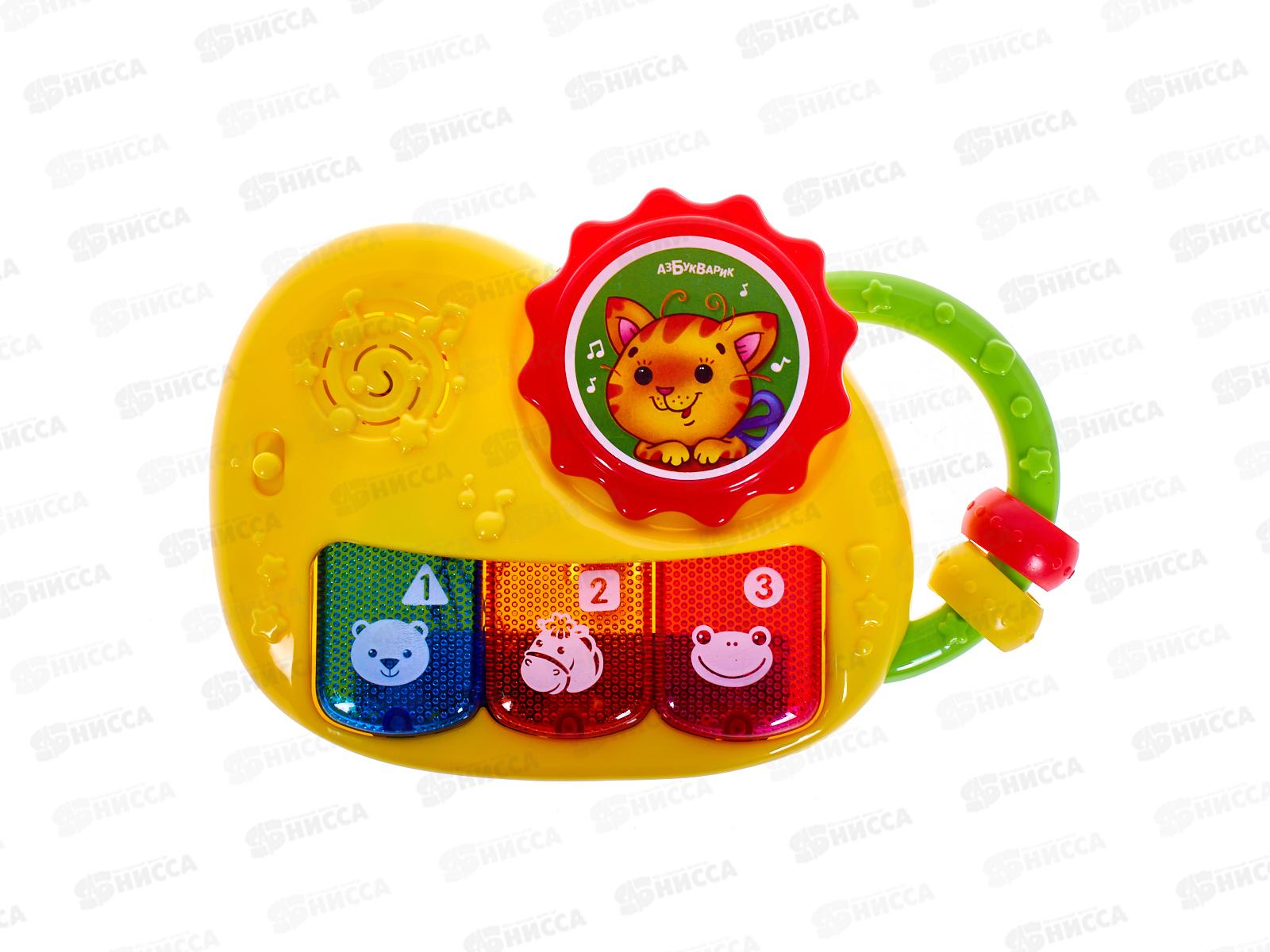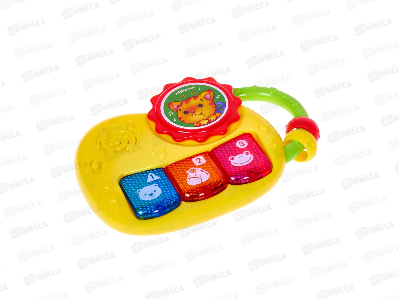 Миниатюрная игрушка-пианино разработана специально для малышей. Нажимая на яркие клавиши ребенок послушает 6 милых песенок о зверятах. Переключите режим – и на клавишах зазвучат веселые мелодии. Под них кроха сможет сам подыграть голосами зверят и смешными звуками. Эта игра не только развлекает, но и развивает у ребенка воображение и музыкальные способности. Во время звучания песенок и мелодий клавиши светятся. Также малышу понравится крутить колесико с забавной зверюшкой и слушать звук трещотки. А яркие колечки и рельефные элементы игрушки так приятно трогать детскими пальчиками! Пианино удобно носить с собой. Бонус для покупателей Пианино Чудесенка – 5 интерактивных сказок для смартфона и планшета. Просто отсканируй QR-код на упаковке!
