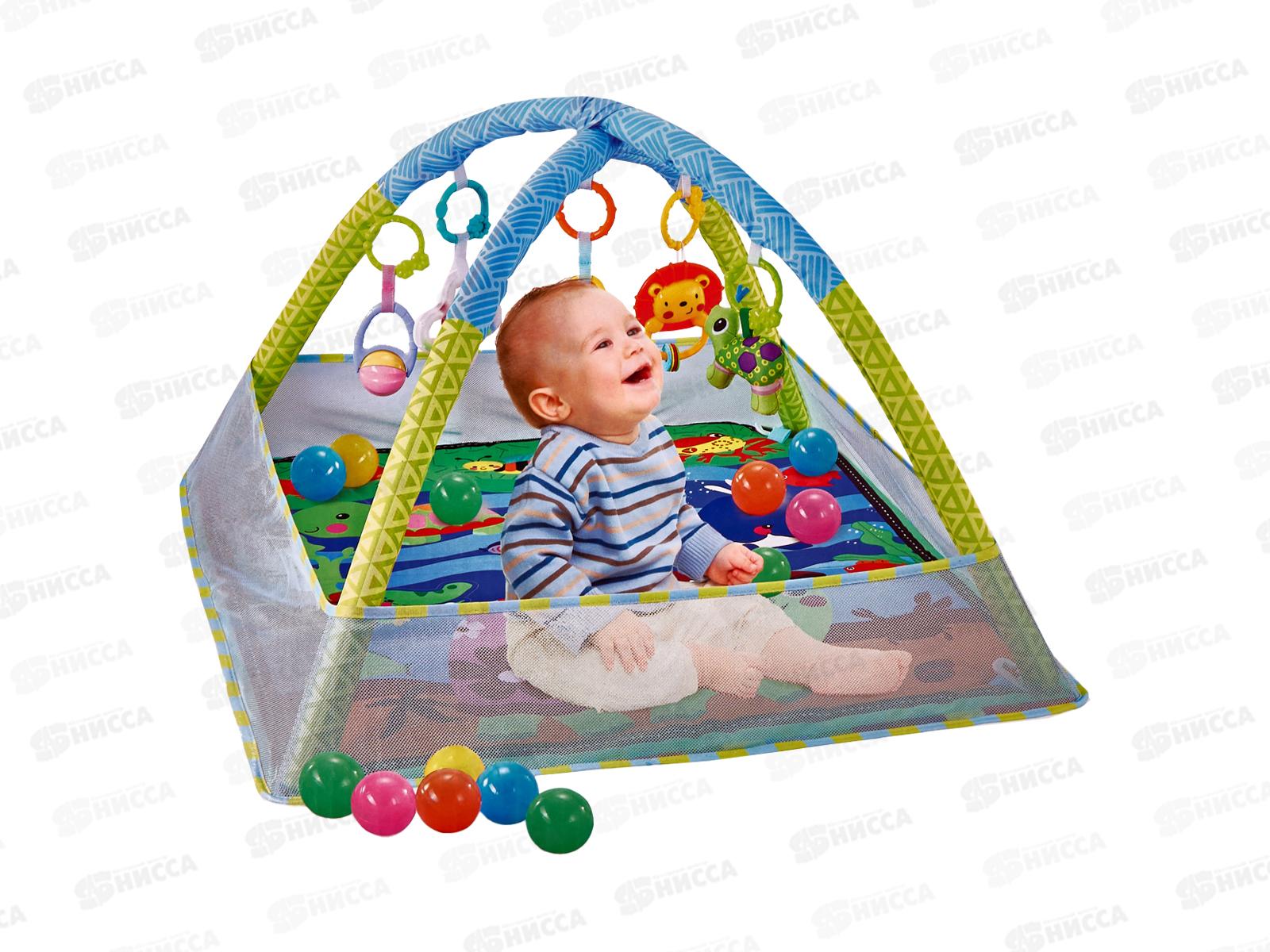 Выбирая ребенку игрушку, современные родители все чаще стремятся к тому, чтобы она была развивающей – так малыш не просто весело проведет время, но и научится чему-нибудь новому. И коврик подходит для этого как нельзя лучше. При этом он еще станет декоративным украшением любой детской комнаты. С помощью развивающего коврика ребенок быстрее научится фокусировать взгляд на предметах и следить за их перемещением, освоит хватательные движения, сможет развить мелкую моторику рук и координацию движений, распознавать форму и текстуру предметов и научиться различать цвета и оттенки. Игрушки идут в комплекте. В комплекте: 5 подвесных игрушек, 18 мячиков. Поверхность коврика легко чистится, а при необходимости его можно даже постирать. Размер: 80х80х55 см. В коробке.