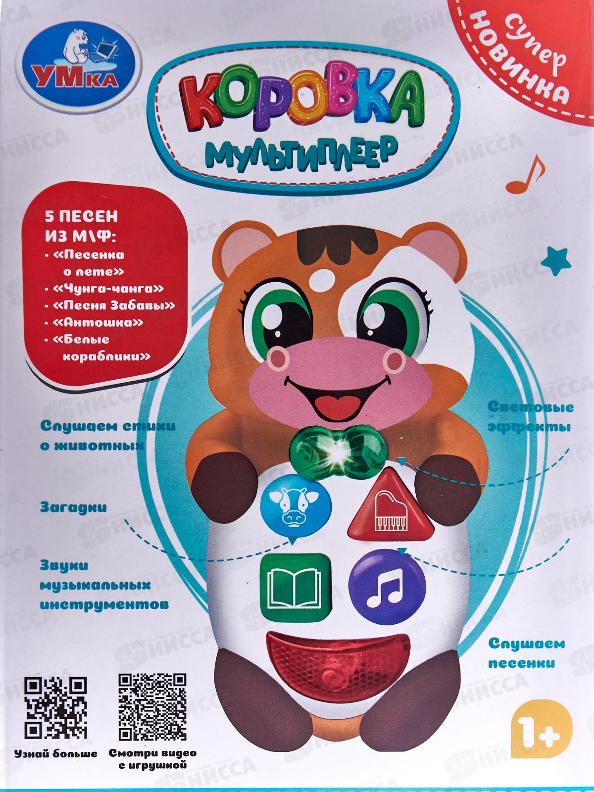 Мультиплеер «Коровка» ТМ «УМка» станет прекрасным подарком для ребёнка: 5 песен из м/ф (фрагменты): «Песенка о лете», «Чунга-Чанга», «Песня Забавы», «Антошка», «Белые кораблики», 10 стихов М. Дружининой. Учим геометрические формы и названия животных, звуки музыкальных инструментов, световые эффекты.