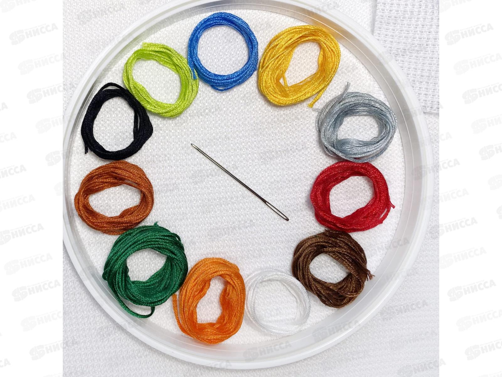 Комплектация: схема вышивки, канва, пяльца, игла, нитки 6 цветов
