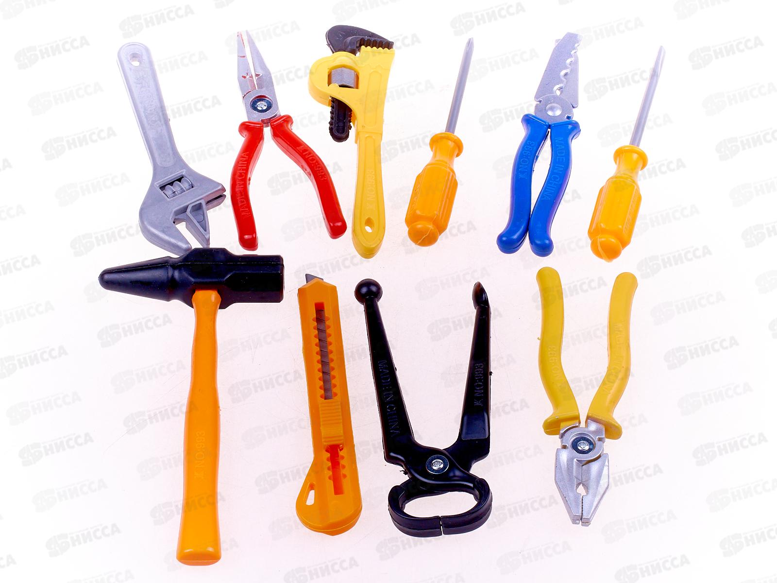 В комплекте: молоток, плоскогубцы, разводной ключ, 2 отвертки, газовый ключ, кусачки, канцелярский нож, клещи, пассатижи.
