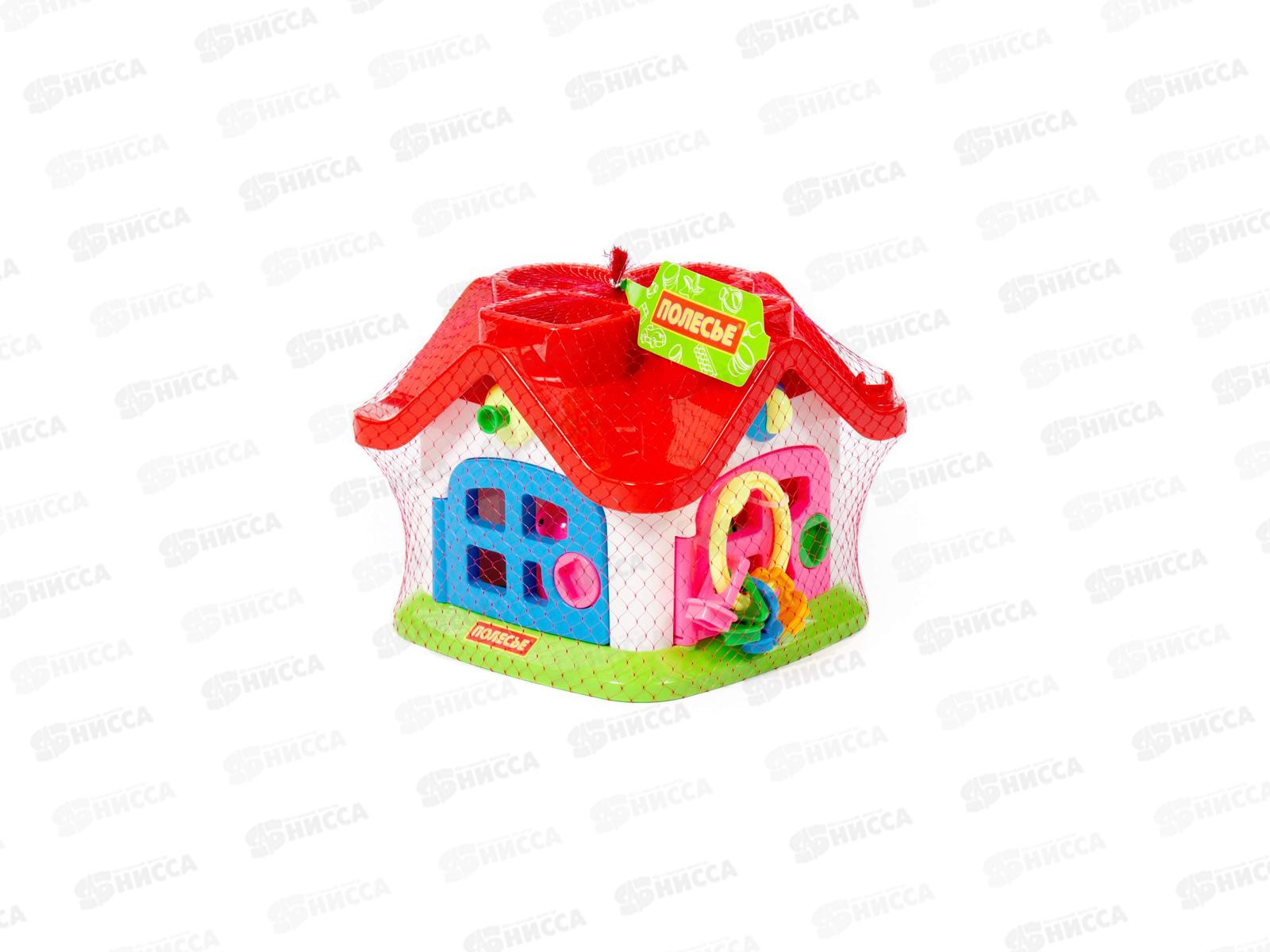 Яркий цветной теремок с 4 дверками на замочках и зверушками знакомит ребёнка с цветами, формами, звуками, развивает мелкую моторику рук, воображение, логику, умение совершать пространственные перемещения. Внутри теремок разбит на 4 комнаты. За каждой дверкой есть жилец: мишка, зайчик, кошка, поросёнок. В теремок они попадают через отверстия в крыше: сажаем их в дырочку, нажимаем на кнопочку (для каждого своя) и зверёк проскакивает в комнату. По желанию в теремок можно войти и через дверку. У каждого зверя основание определённой формы: у зайца в основе - треугольник, у поросёнка - кружок, у котёнка - крест, у мишки - квадрат.