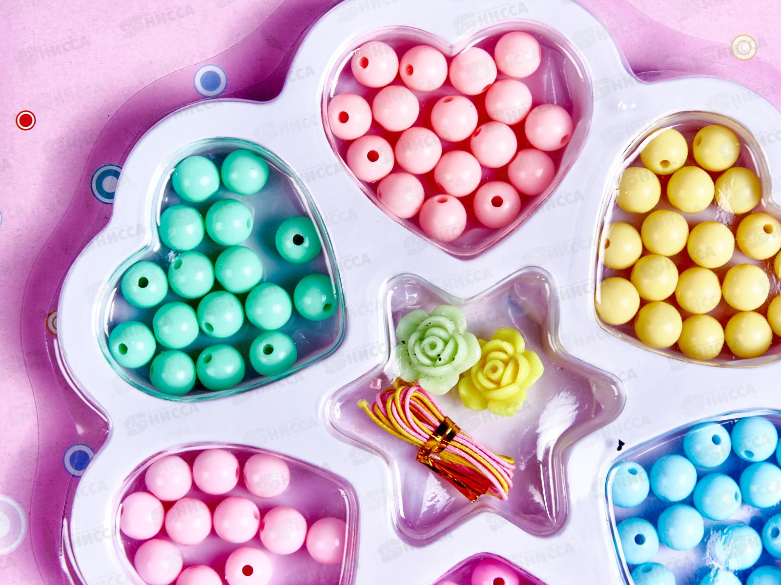 Набор предназначен для изготовления браслетиков и ожерелий из разноцветных бусинок - замечательных украшений для маленьких девочек. Набор предлагает проявить фантазию - подобрать сочетание по форме и цвету, и очень быстро и легко, без использования иглы,создать себе комплект украшений. Способствует развитию внимания, мышления, цветового и зрительного восприятия, координации движений.
