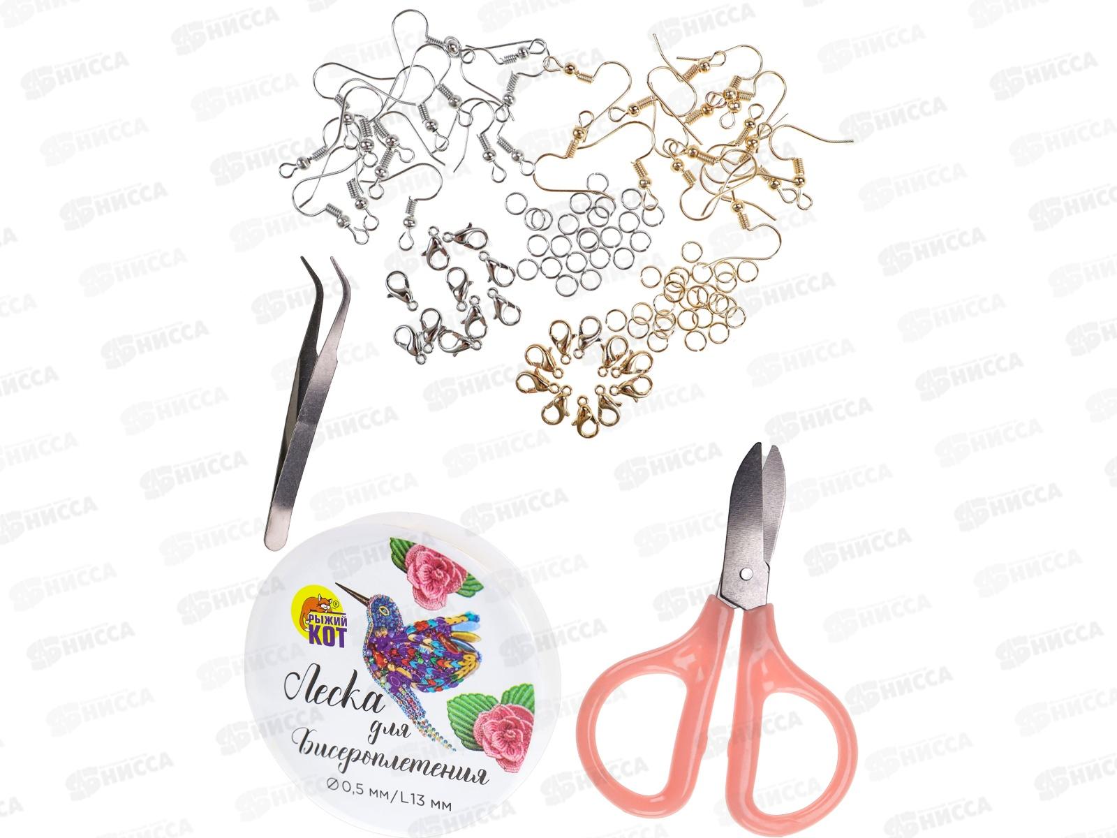 Бисероплетение - это увлекательное занятие не только развлекает, но и очень полезно для развития. Занятия с бисером помогают развивать мелкую моторику, укрепляют мышцы пальчиков. Стараясь ухватить маленькую бусинку, ребенок вырабатывает координацию движения, развивается его мышление. Делая самостоятельно поделку из бисера, малыш развивает в себе фантазию и творческое воображение. Размер лески: d-0,5 мм, длина 13 м. Фурнитура в комплекте: швензы (основа для сережек) 30 штук, колечки 50 штук, замочки 20 штук.