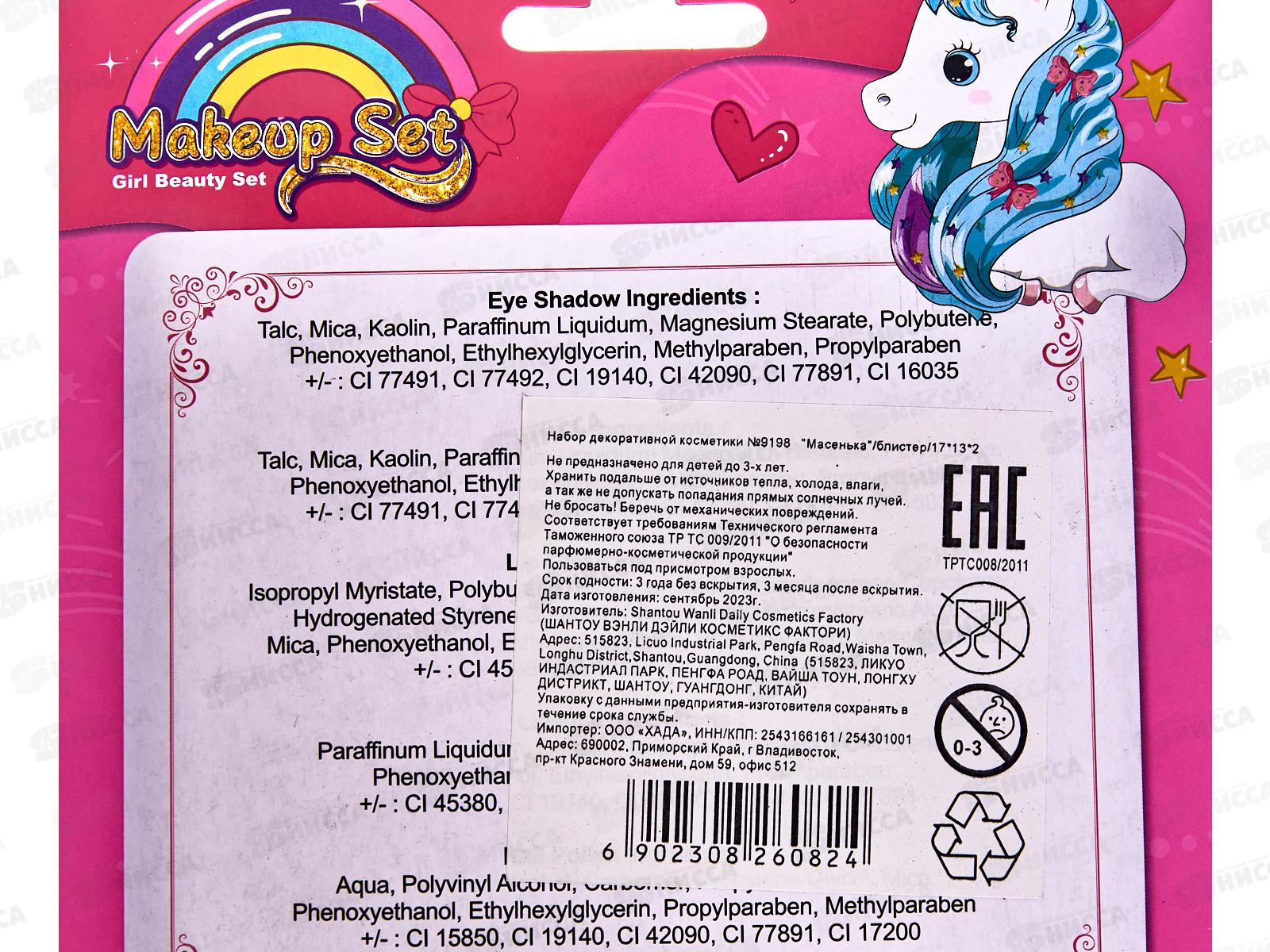 Набор декоративной косметики №9198 "Масенька" блистер 17*13*2