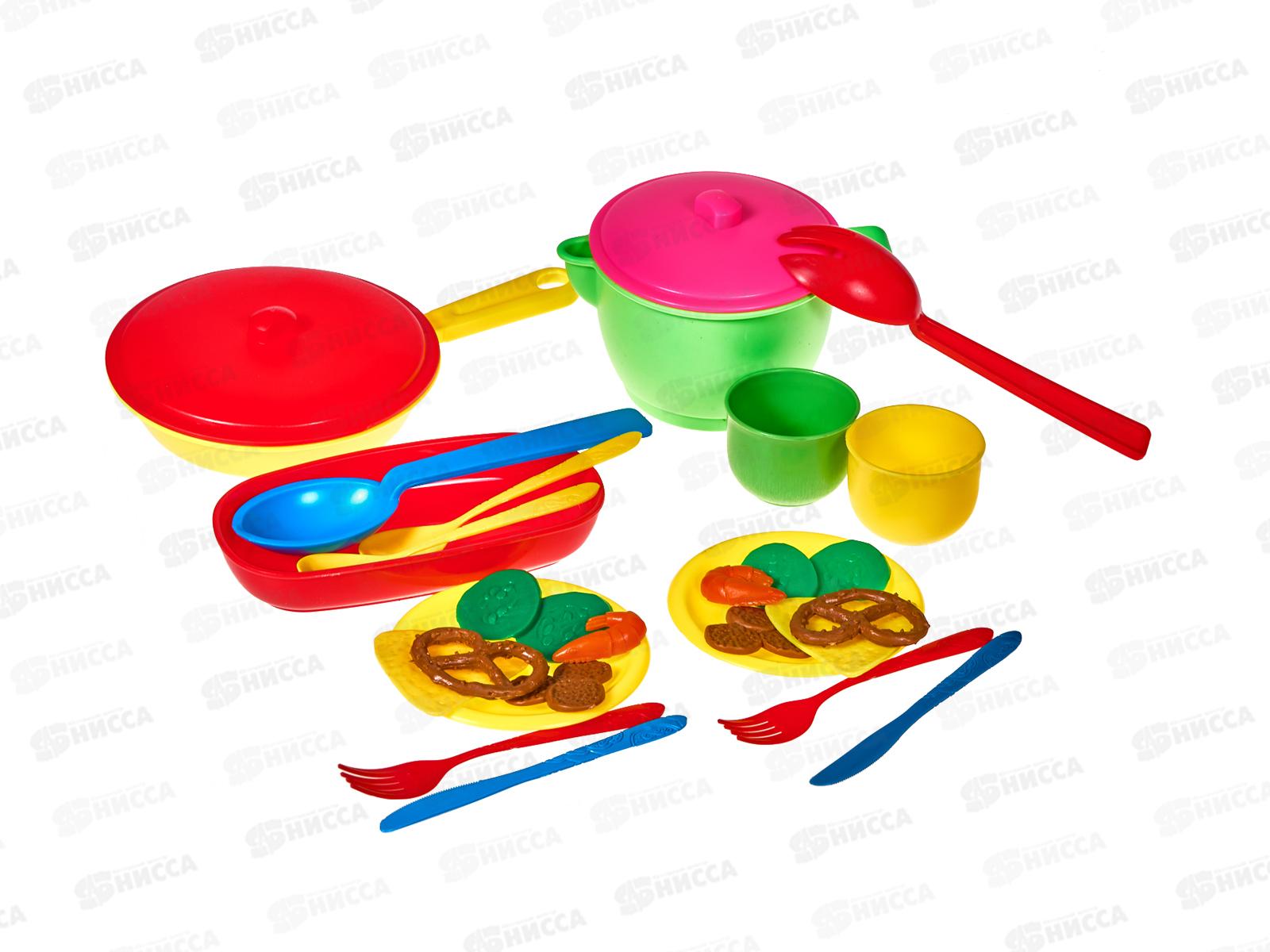 Комплектация: корзина, сковорода, кувшин, 2 крышки, 3 тарелки, 2 банки, 6 приборов, больш