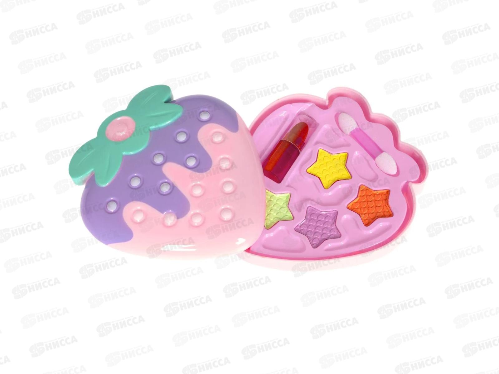В наборе: розово сиреневая косметичка клубничка, тени для век 4 оттенка, помада, аппликатор.