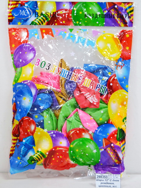 • Шары 12" С днем рождения, цветные, ассорти (уп/50шт) МС-3546