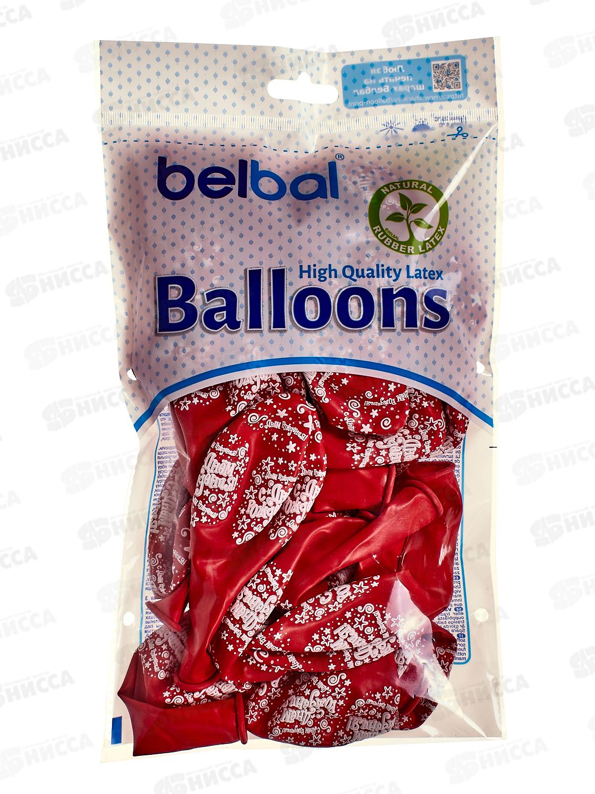Шары 14" пастель шелкография "С Днем Рождения Звезды красные" (уп/25шт) 1103-2856