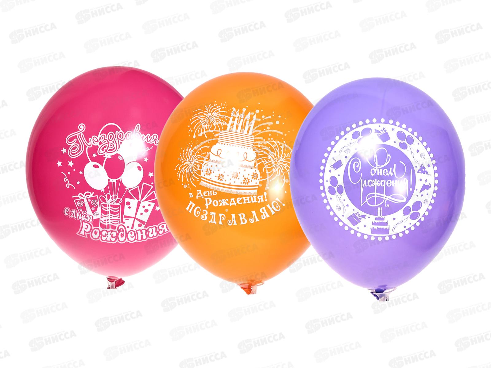 Шары 14" с рисунком С Днем Рождения (уп/50шт) 1103-1023