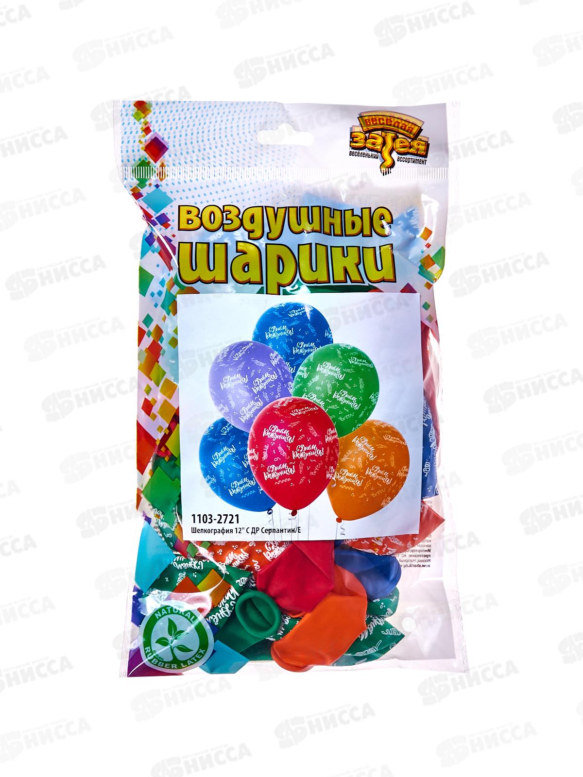 Шары 12" Шелкография С ДР Серпантин/Е (25шт), 1103-2721