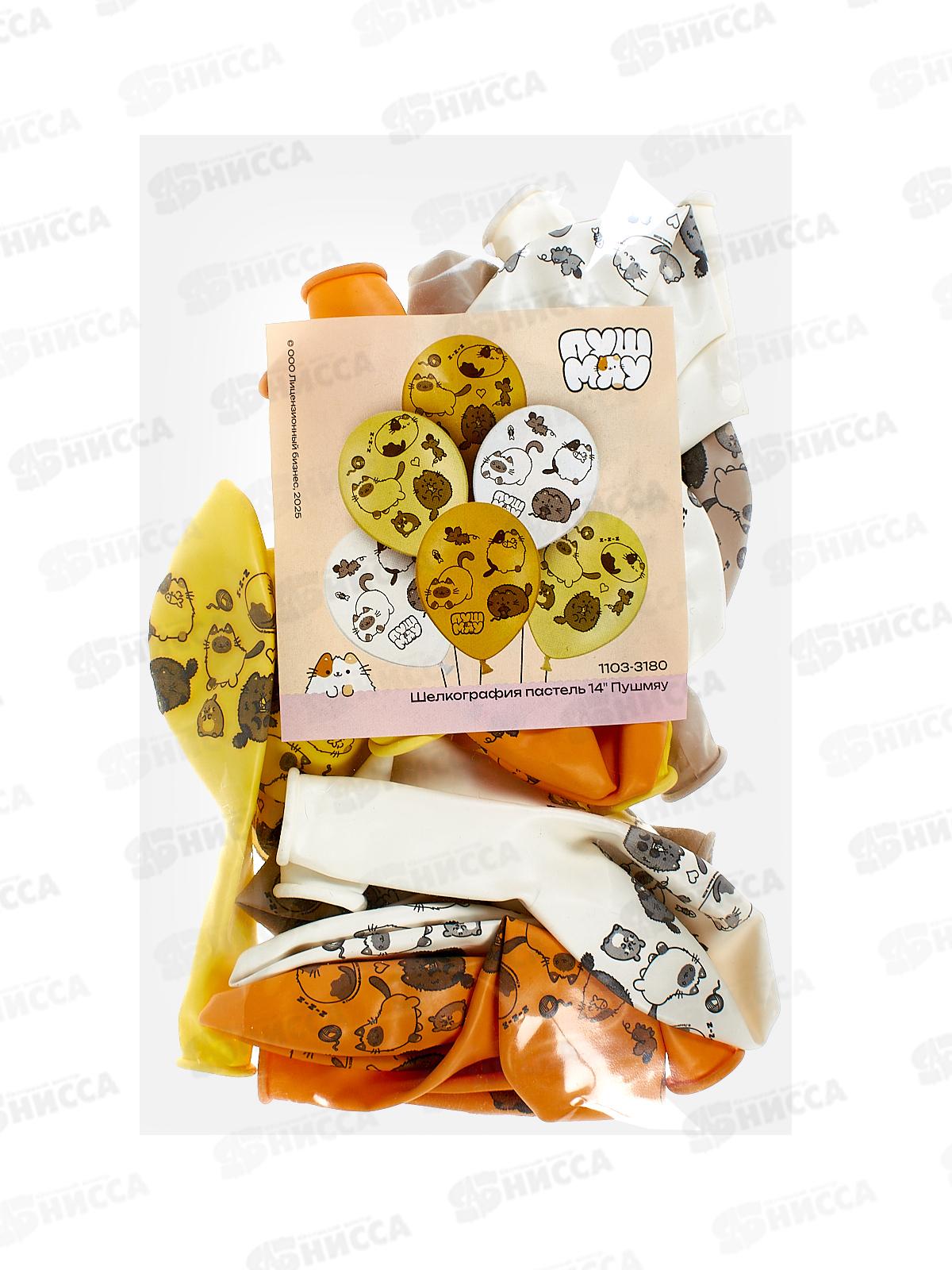 Шары 14" пастель шелкография "ПушМяу" (уп/25шт) 1103-3180