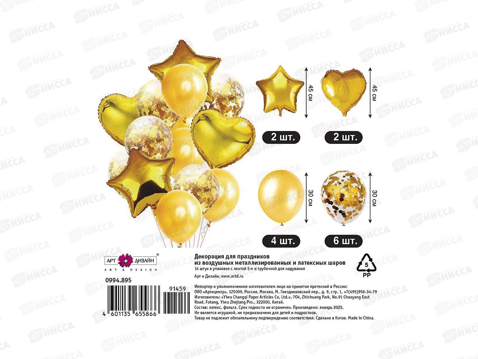 Набор шаров 14 золото (плюс 5м веревка) 0994.895