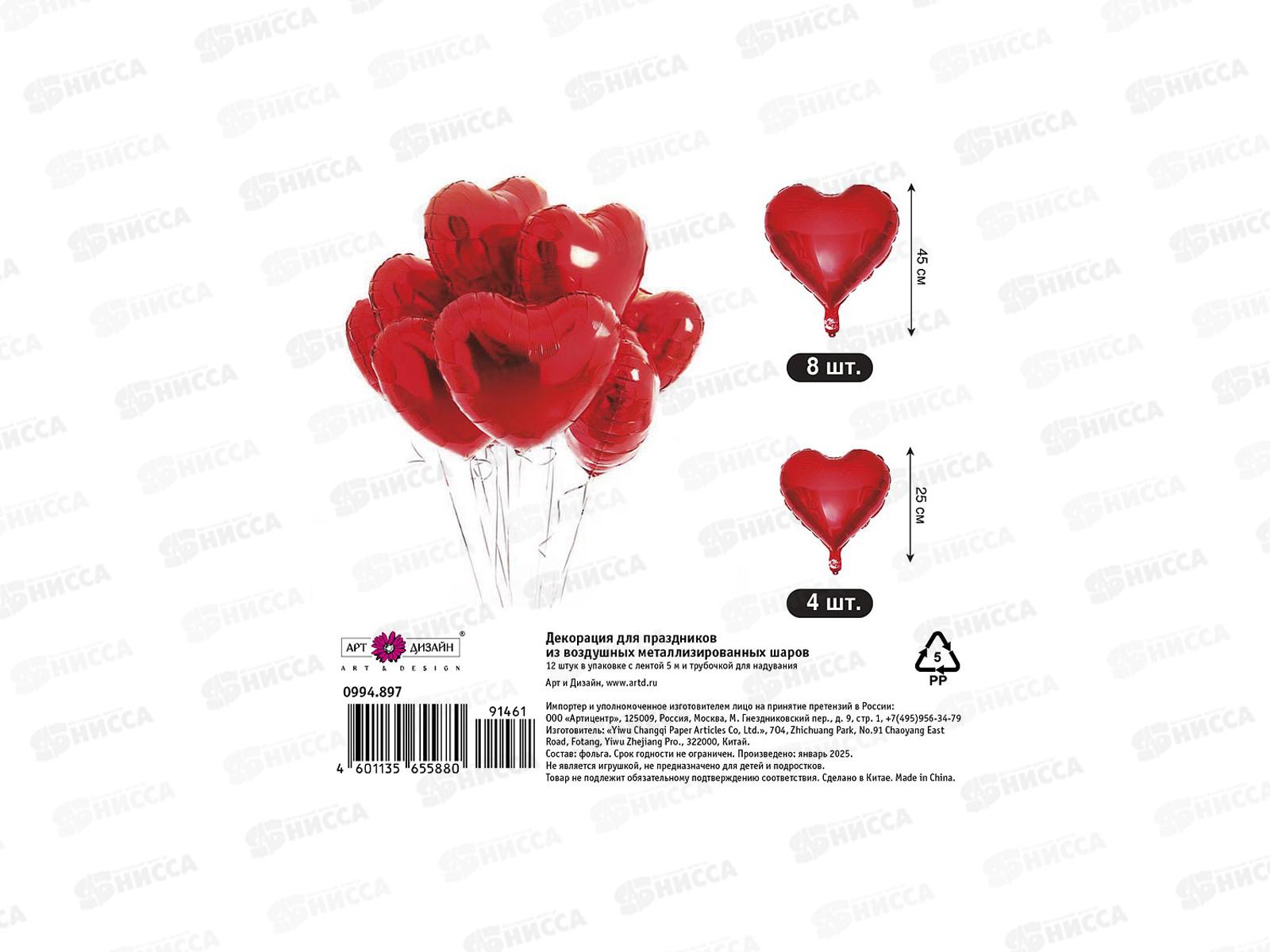 Набор шаров 12 фольга сердце (плюс 5м веревка) 0994.897