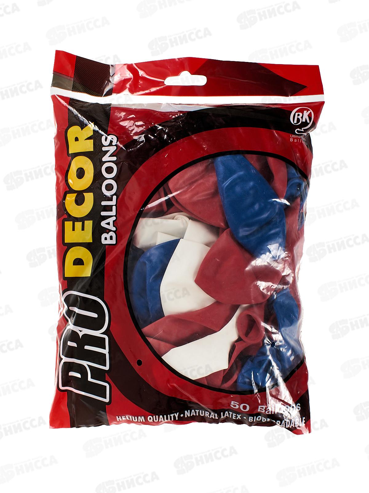 Шары 12" пастель белый, синий, красный, 50шт 6979309