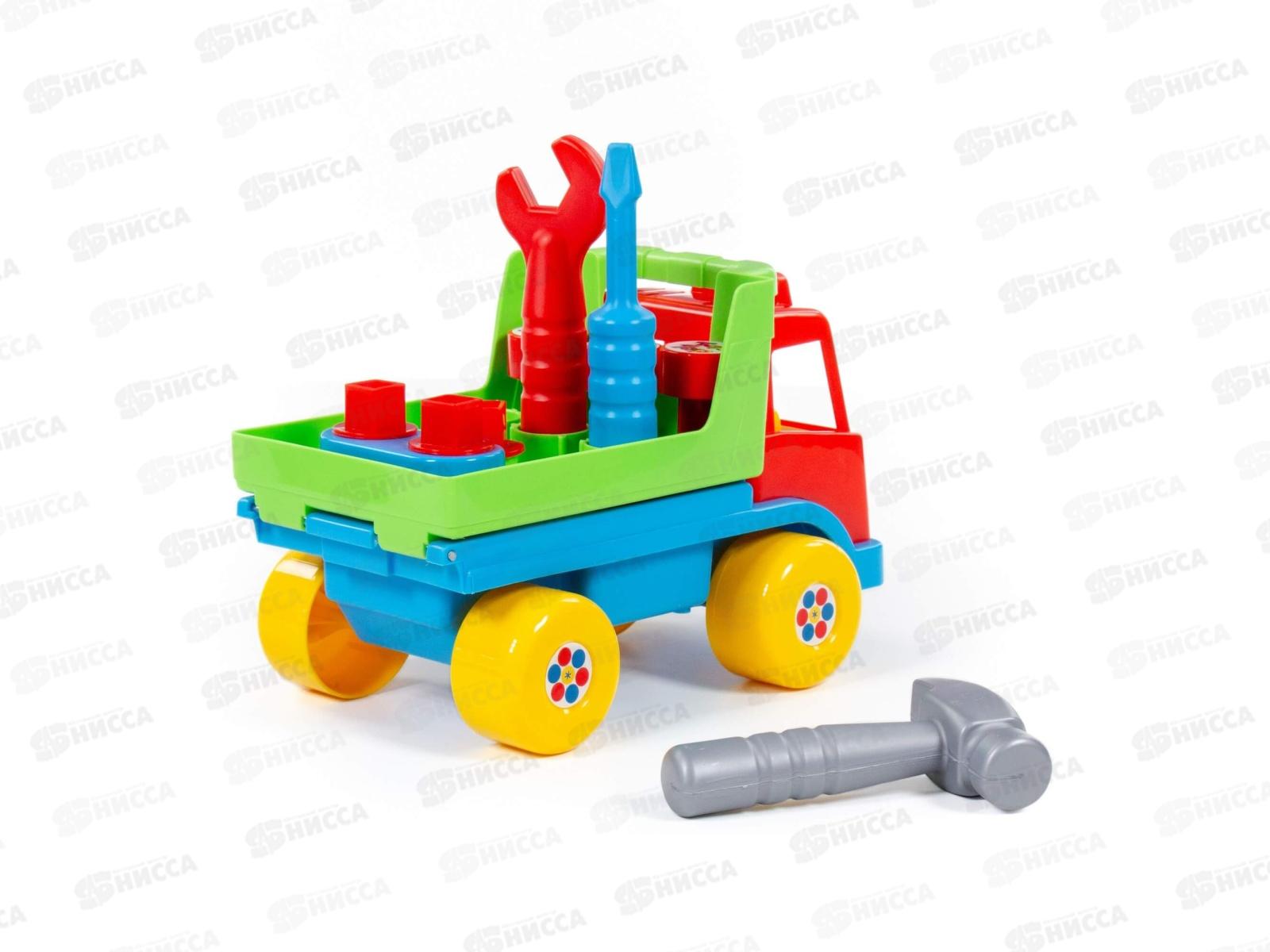 Автомобиль "Техпомощь" является развивающей игрушкой для детей до 3-х лет. Крышка кузова автомобиля откидывается за ручку над кабиной и в таком положении тоже является рабочей поверхностью. С помощью молотка, отвертки и гаечного ключа можно забивать гвозди (3 шт.), вкручивать болты (3 шт.). Для этого в крышке кузова имеются специальные отверстия. В сам кузов можно сложить свободные болты, гвозди, другие мелкие детали. Игрушка знакомит с работой и назначением основных слесарных инструментов, развивает моторику рук, логику, память, воображение.