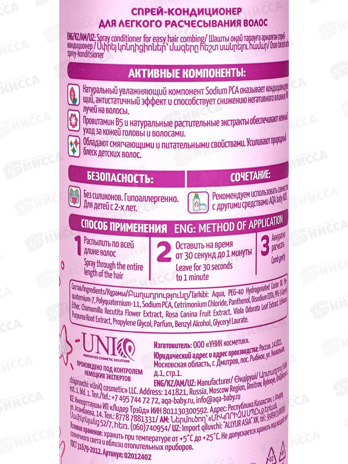 AQA baby KIDS Спрей-кондиционер для легкого расчесывания волос 200мл *6