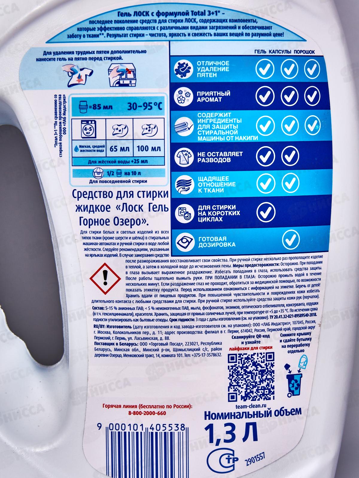 Гель для стирки LOSK "Горное Озеро" Active-Zyme 6 для белого и светлого белья - последнее поколение жидких средств для стирки LOSK, содержащее 6 энзимов, которые эффективно справляются с различными видами загрязнений. Гель для стирки содержит: эксклюзивную формулу Active-Zyme 6 с комбинацией из 6 энзимов для эффективного удаления различных пятен; передовую парфюм-технологию, дарящую вещам до 40% больше свежести.