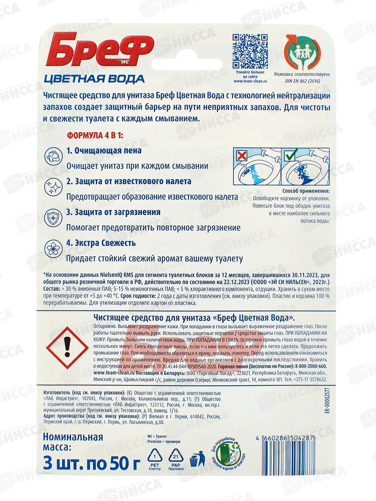БРЕФ Колор актив чистящее средство для унитаза Хлор-компонент 3*50г