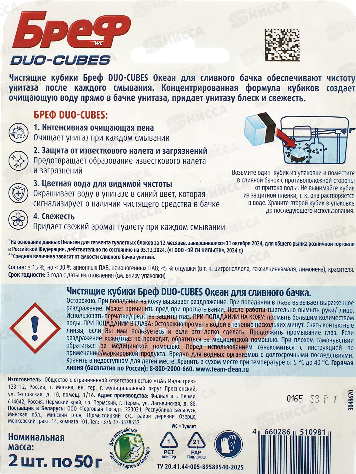 БРЕФ 2*50г ДУО-КУБ чистящие кубики для сливного бачка