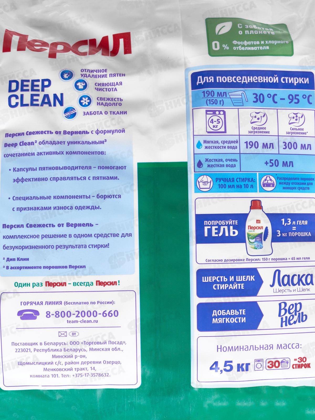 ПЕРСИЛ стиральный порошок 4,5кг Свежесть Вернеля Эксперт *4