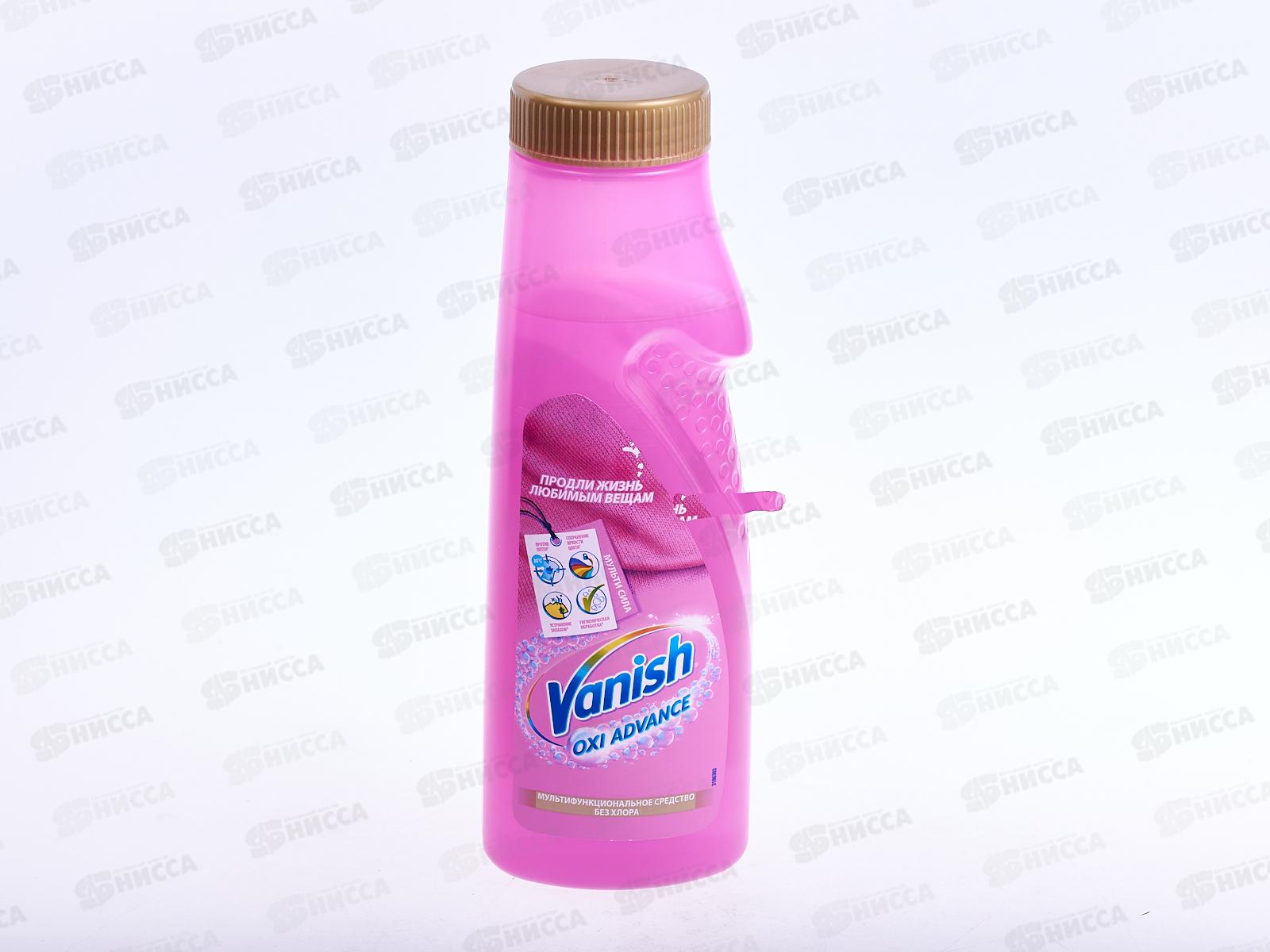 Пятновыводитель для тканей Vanish Oxi Advance Гель, 400 мл. Новый Vanish Мультисила – новое мультифункциональное средство без хлора для усиления качества стирки цветных тканей. Теперь Ваниш не только эффективно удаляет пятна, но и предотвращает окрашивание ткани, избавляет от неприятного запаха и производит гигиеническую обработку. Ваниш Мультисила – одно решение трех проблем! Продли жизнь любимым вещам с Vanish! Выводит пятна даже в холодной воде. Сохраняет яркость цвета. Устраняет запахи. Не содержит хлора.