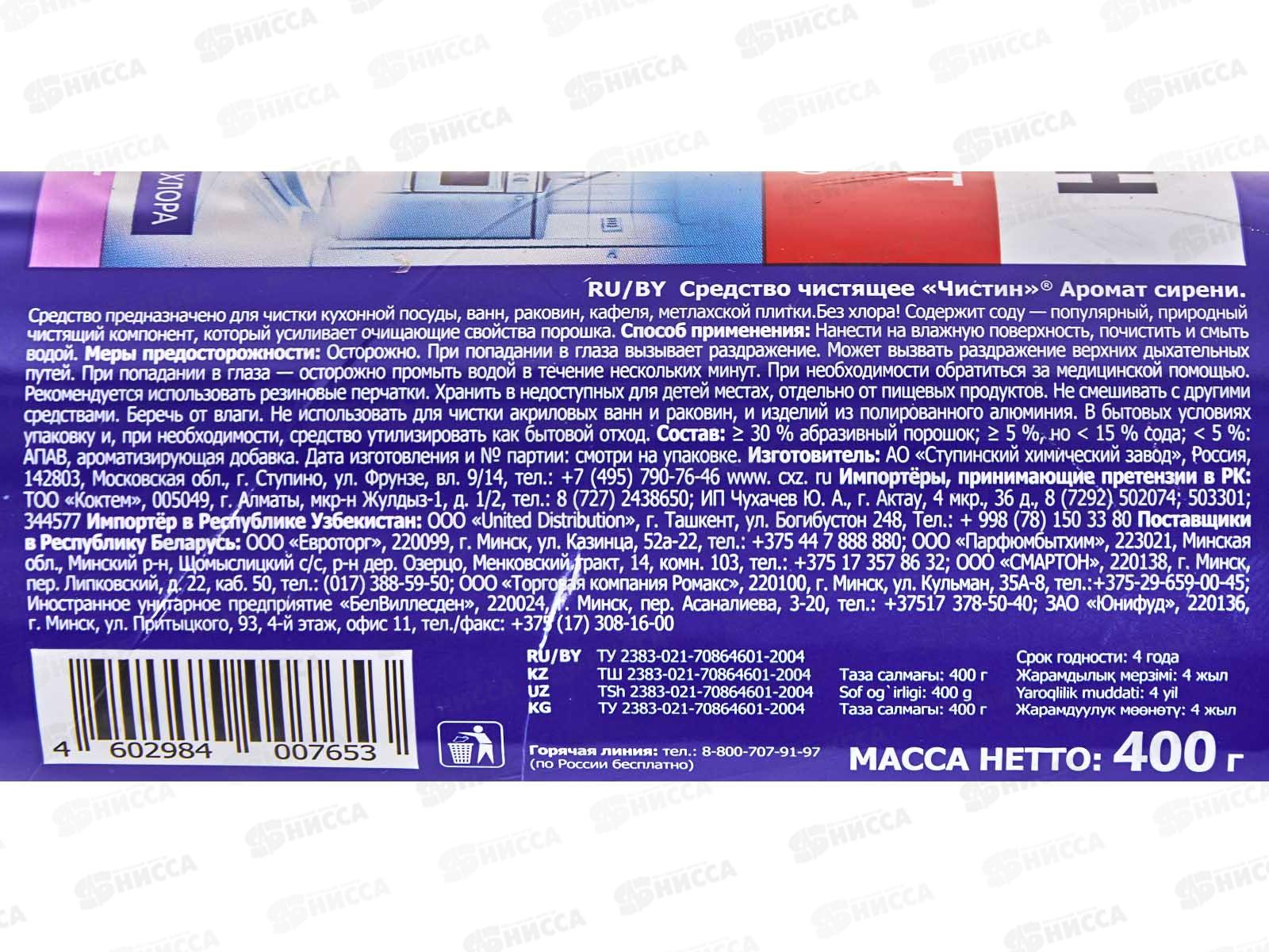 ЧИСТИН чистящий порошок 400гр Сирень банка *20