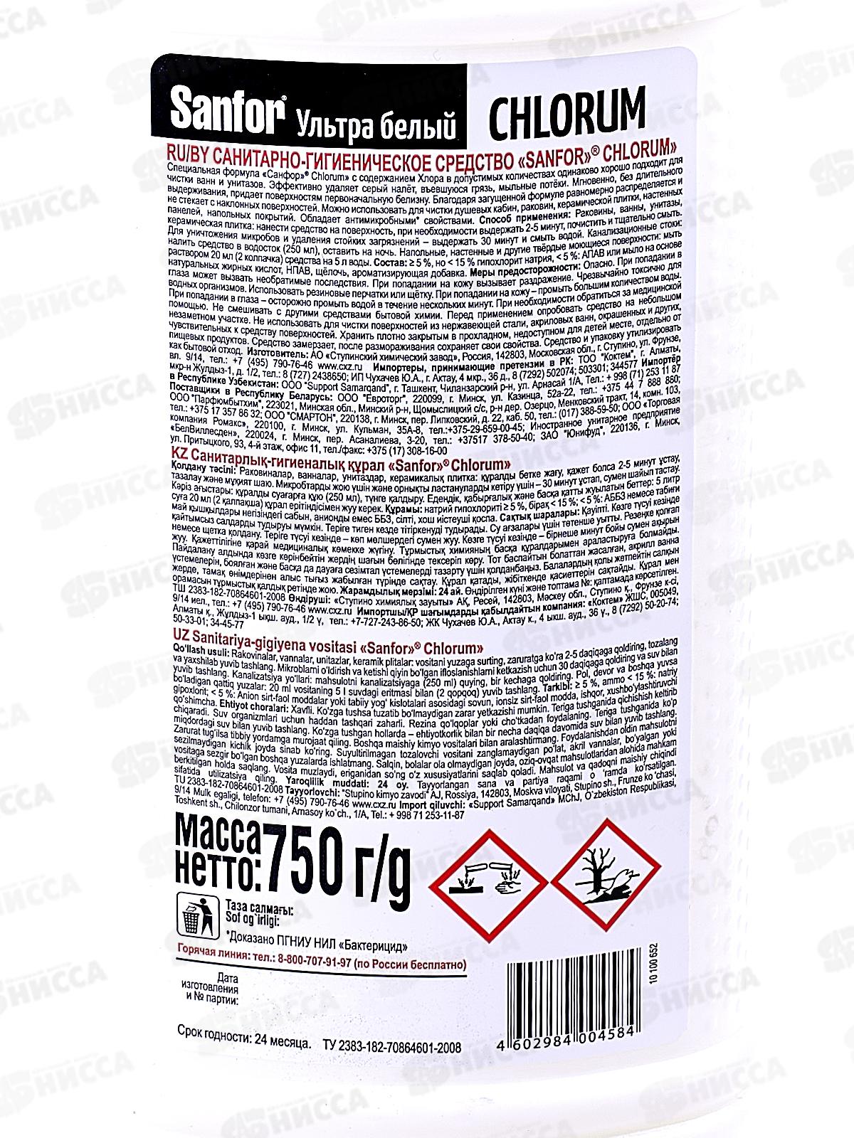САНФОР ХЛОР средство для чистки и дезинфекции 750г *15
