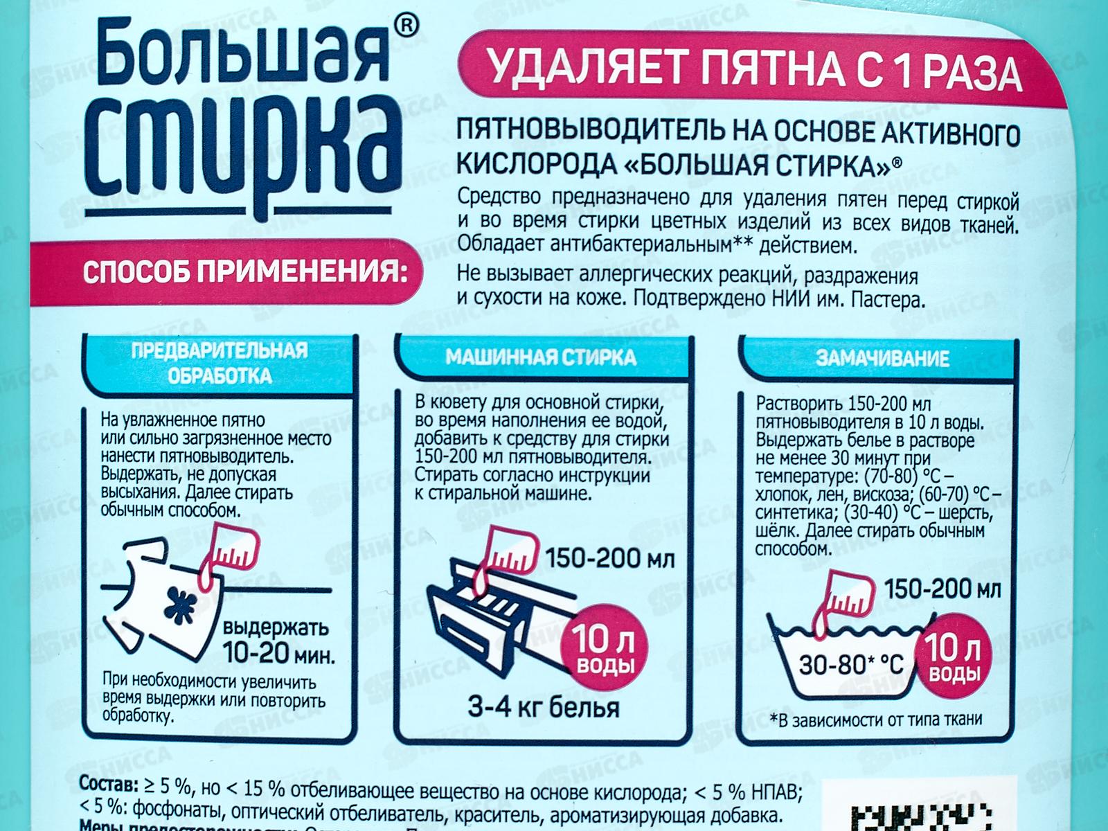 Большая Стирка пятновыводитель на основе актив кислорода 500г *6