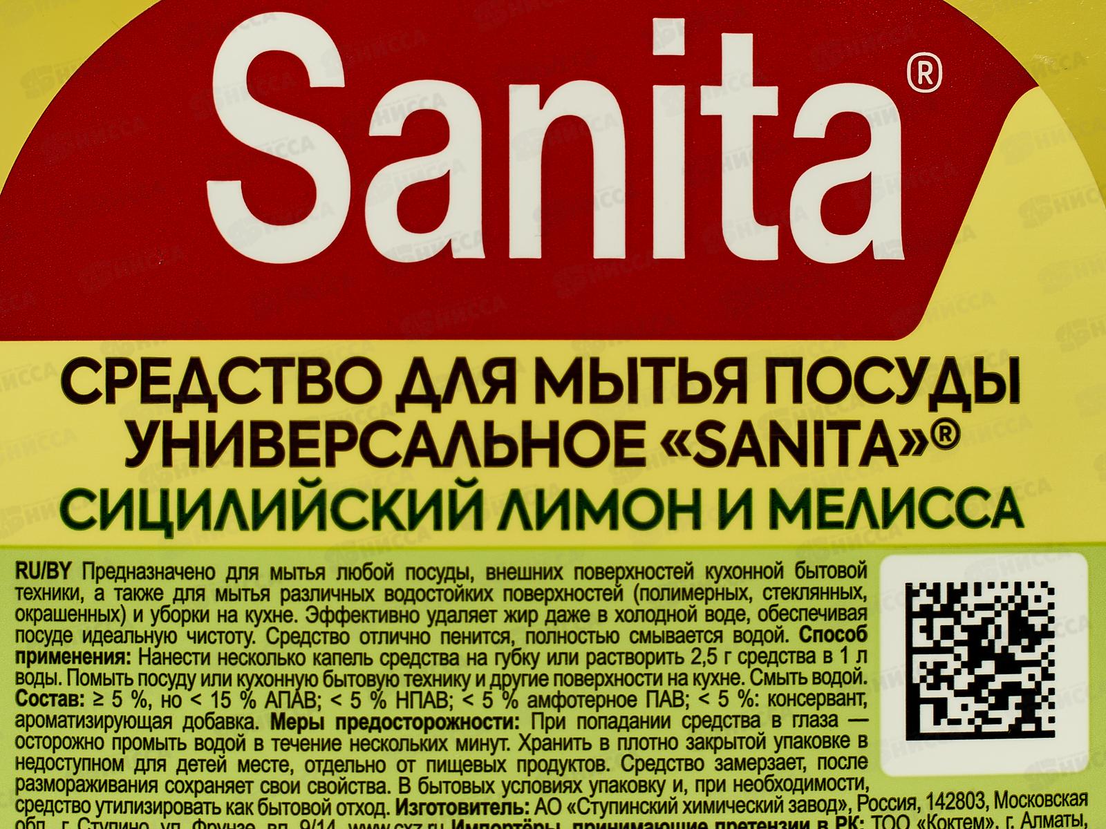САНИТА гель для посуды Сиц лимон и мелисса 900г *8 Акция