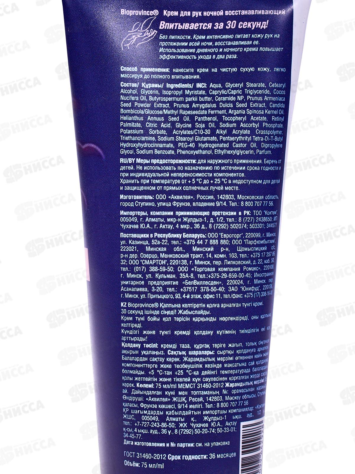 BioProvince Крем для рук ночной восстанавливающий 75мл *24