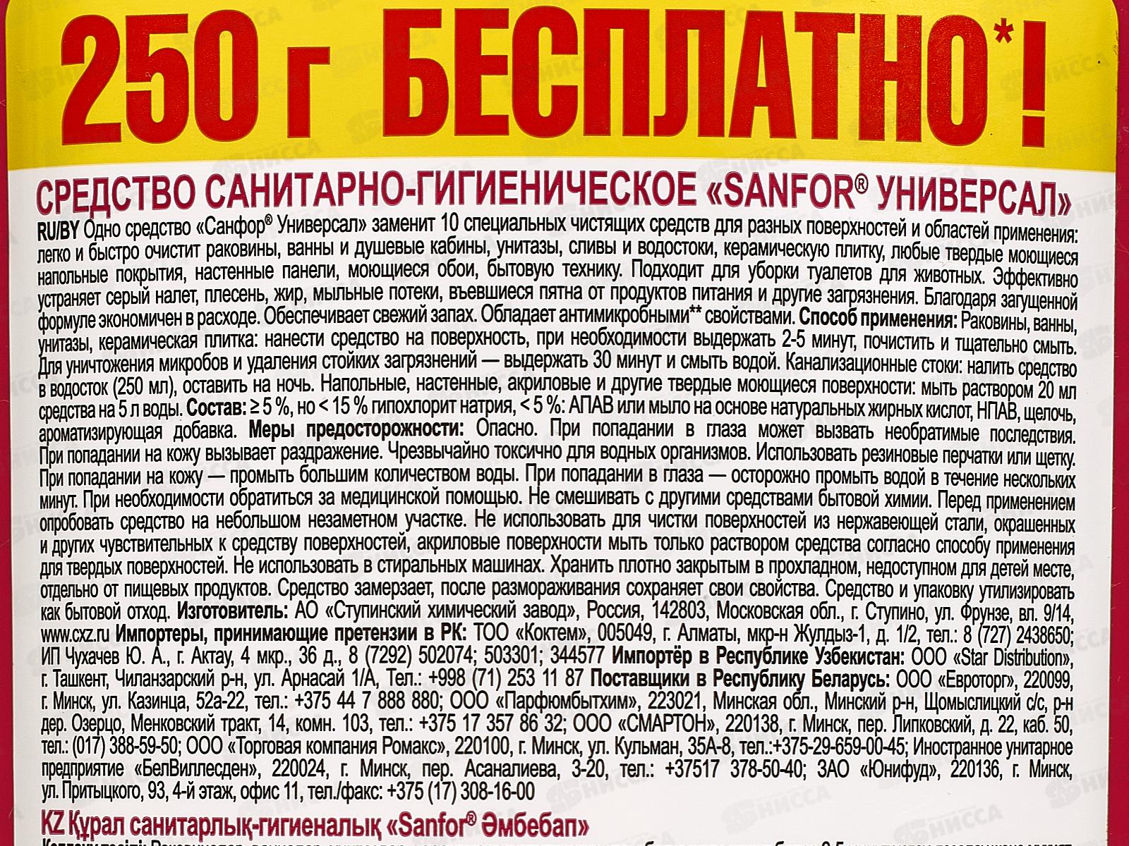 САНФОР Универсал Ультра блеск Чистота и гигиена 750+250г 26384 *10