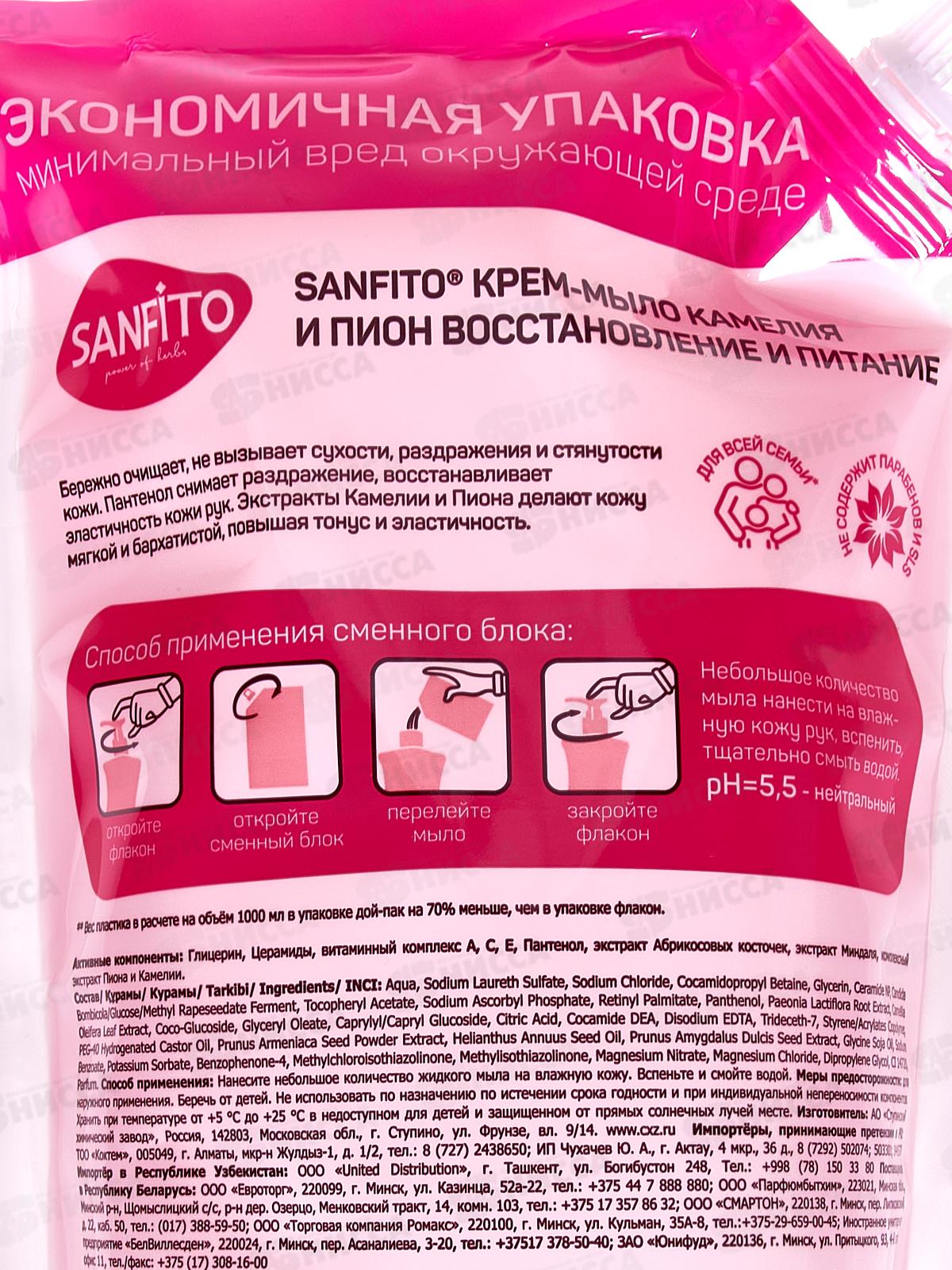 Sanfito крем-мыло Камелия и пион Восс и питание 1000мл д-п *6