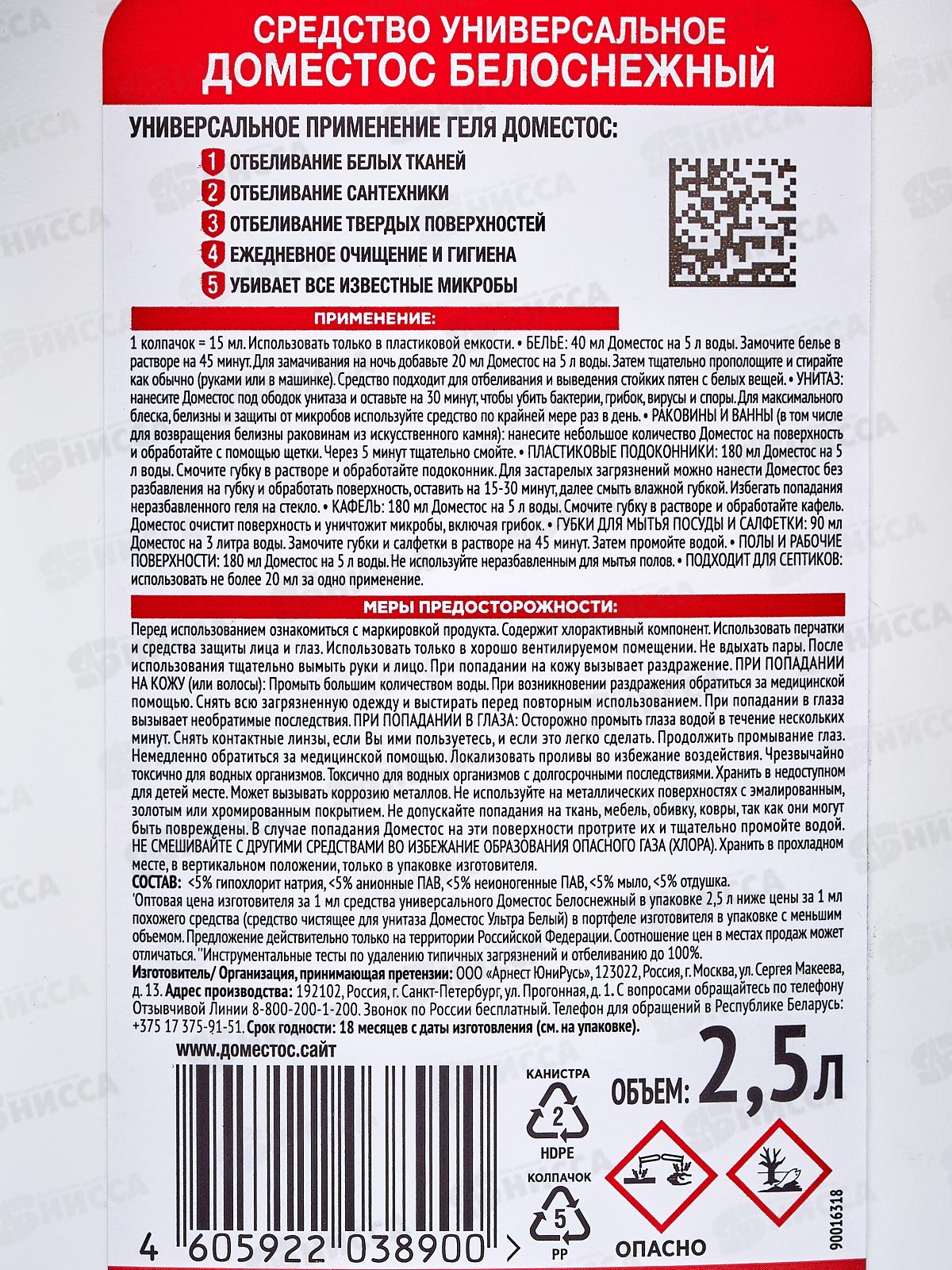 ДОМЕСТОС Гель 2,5л Белоснежный 5в1 отбеливатель *3