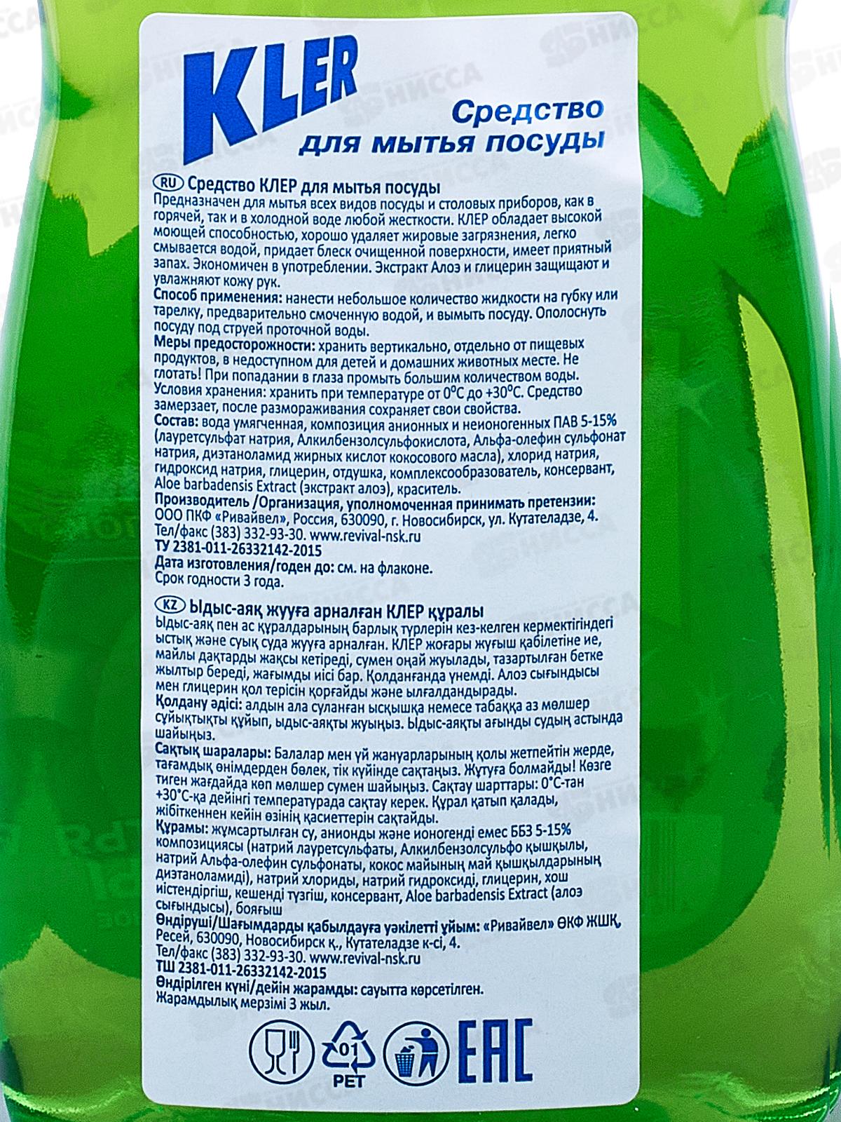 КЛЕР средство для мытья посуды 500мл ЯБЛОКО *10
