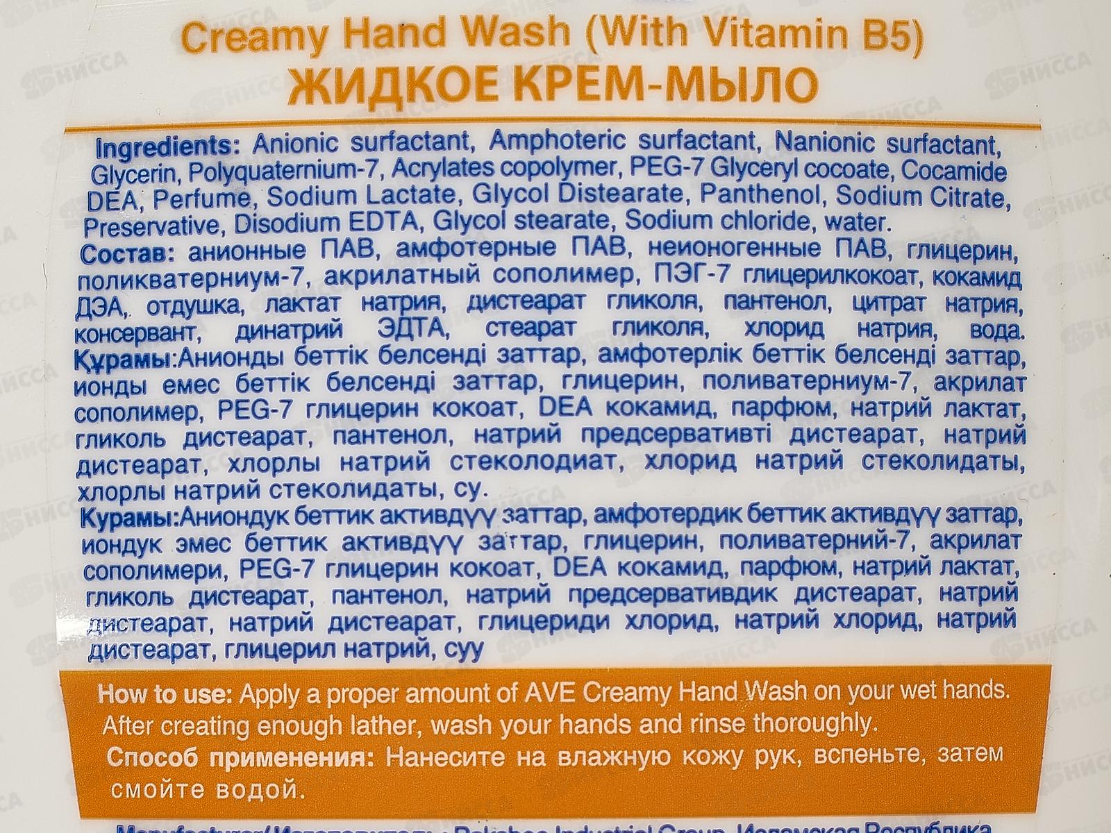 AVE Жидкое крем-мыло Мед и молоко 300мл 8568 *12