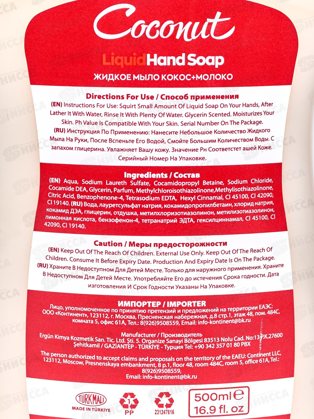 SVO Мыло жидкое 500мл Кокос молоко *12