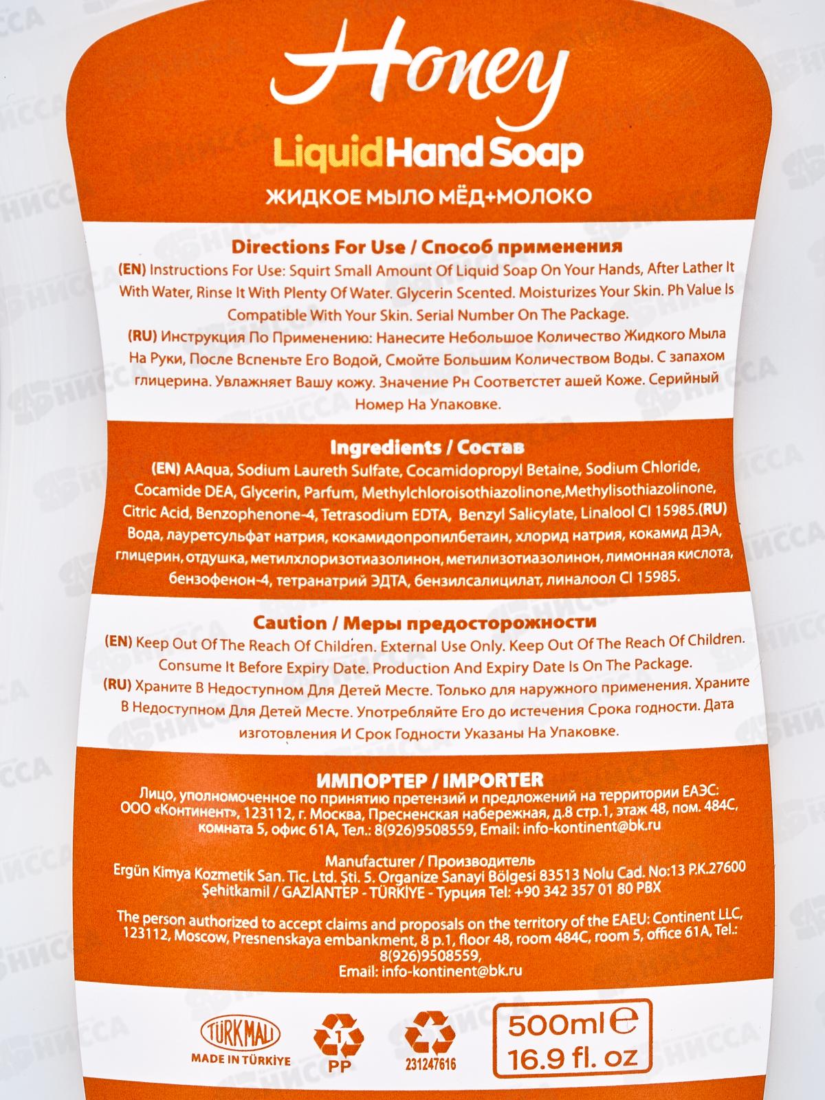 SVO Мыло жидкое 500мл Мед молоко *12