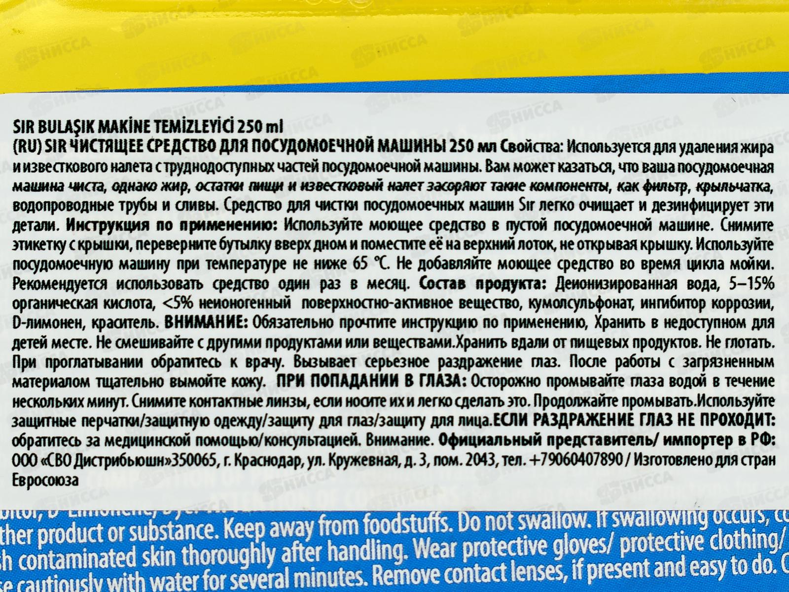 СИР Блок для очищения посудомоечных машин 250мл *24