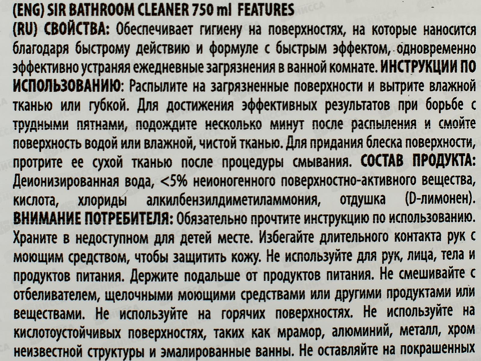 СИР Спрей чистящий для поверхностей в ванной 750мл *12