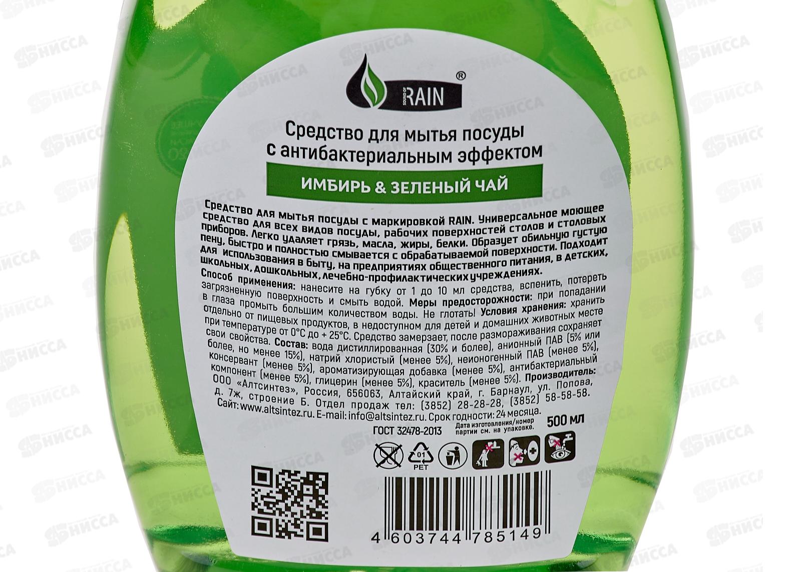 RAIN Средство для посуды Имбирь-Зеленый чай 500мл флип-топ *15 1493