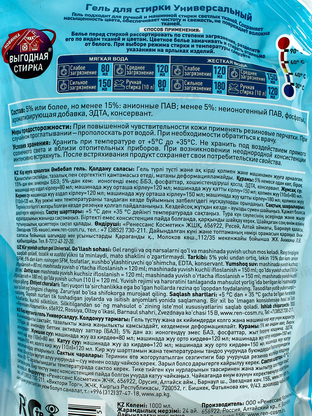 ВЫГОДНАЯ СТИРКА Гель для стирки Свежесть 1л дой-пак *8 3256