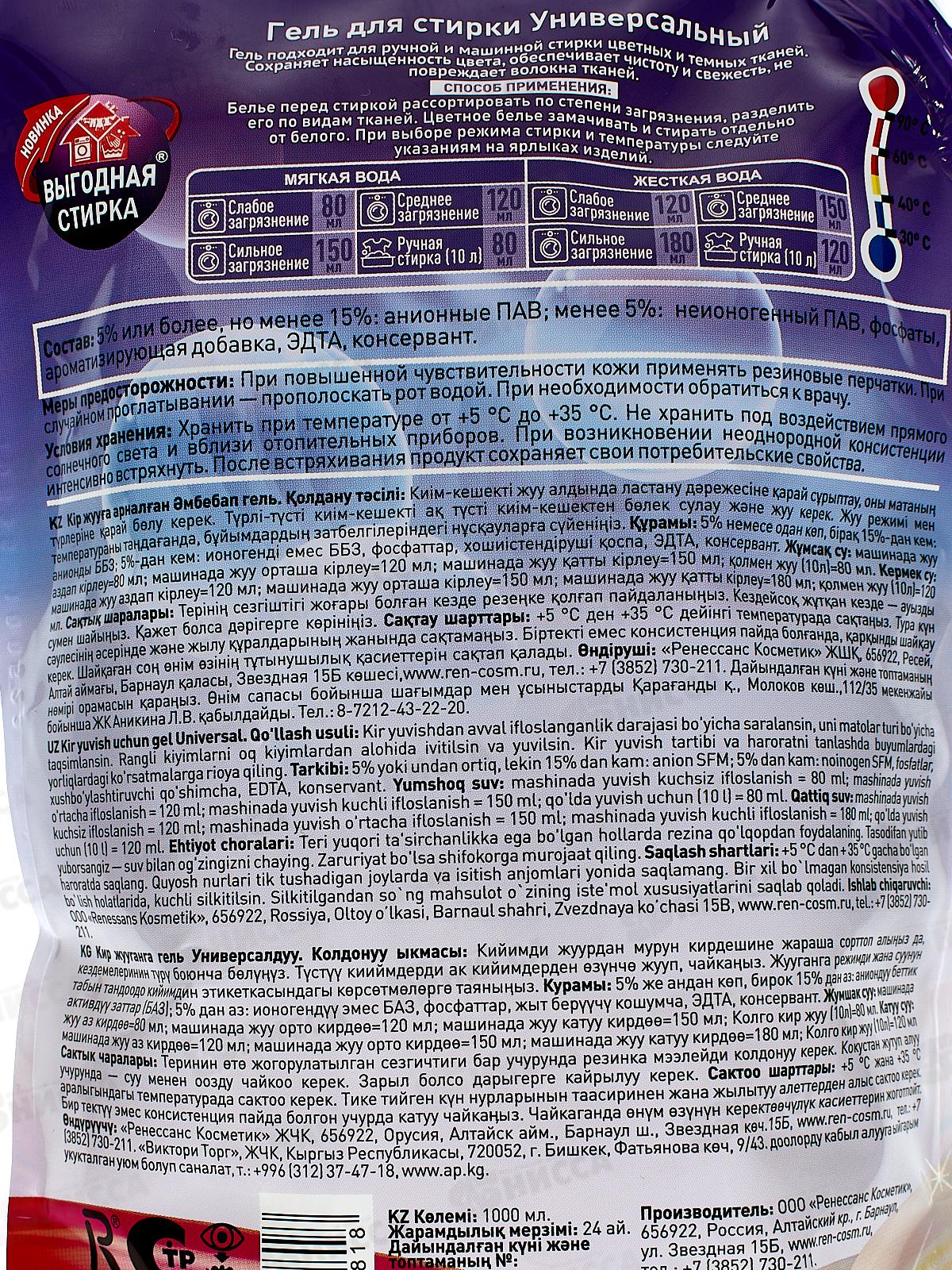 ВЫГОДНАЯ СТИРКА Гель для стирки Колор 1л дой-пак *8 3279